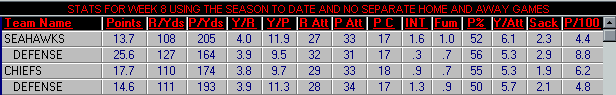 All of these are averaged on the number of games you use in your formula (as indicated in the title). If you click on a column the program displays all teams rank in that offensive stat.